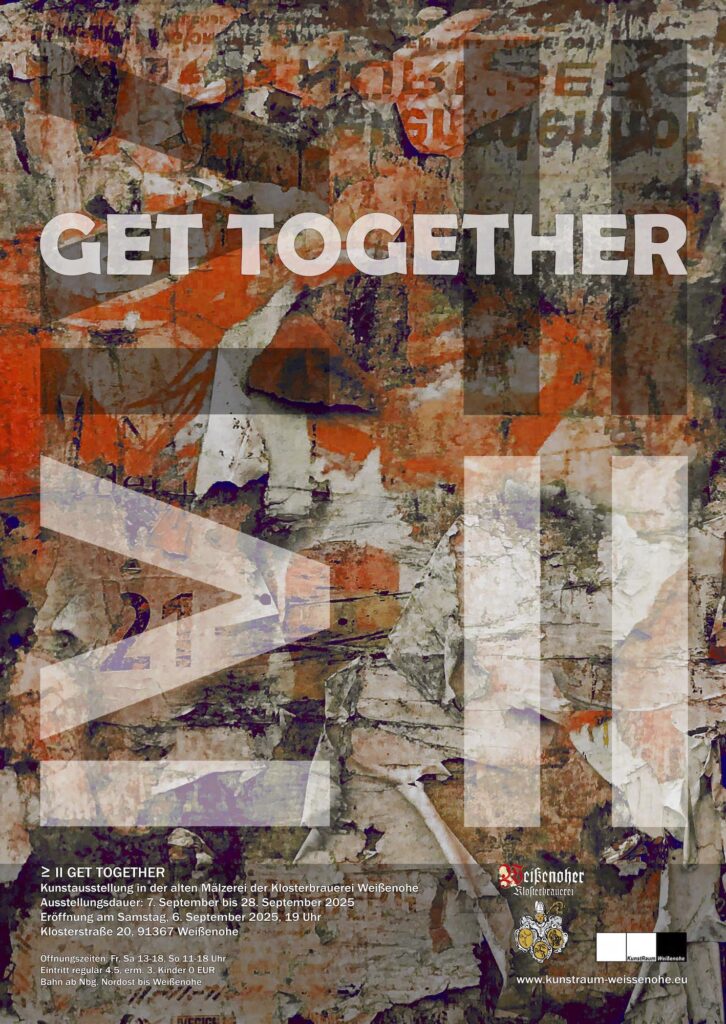 Udział w międzynarodowej wystawie zbiorowej sztuki współczesnej „≥ II GET TOGETHER” w ramach konkursowej wystawy organizowanej przez Stowarzyszenie KunstRaum Weissenohe w Weissenohe w Niemczech. Wystawa trwała od 6 września (otwarcie) do 28 września 2025 i miała miejsce w zabytkowym browarze klasztornym w Weissenohe w Niemczech. Kuratorzy: Lutz Krutein i Janusz Radtke. Wernisaż przygotowali Katharina Winkler i Lutz Krutein.